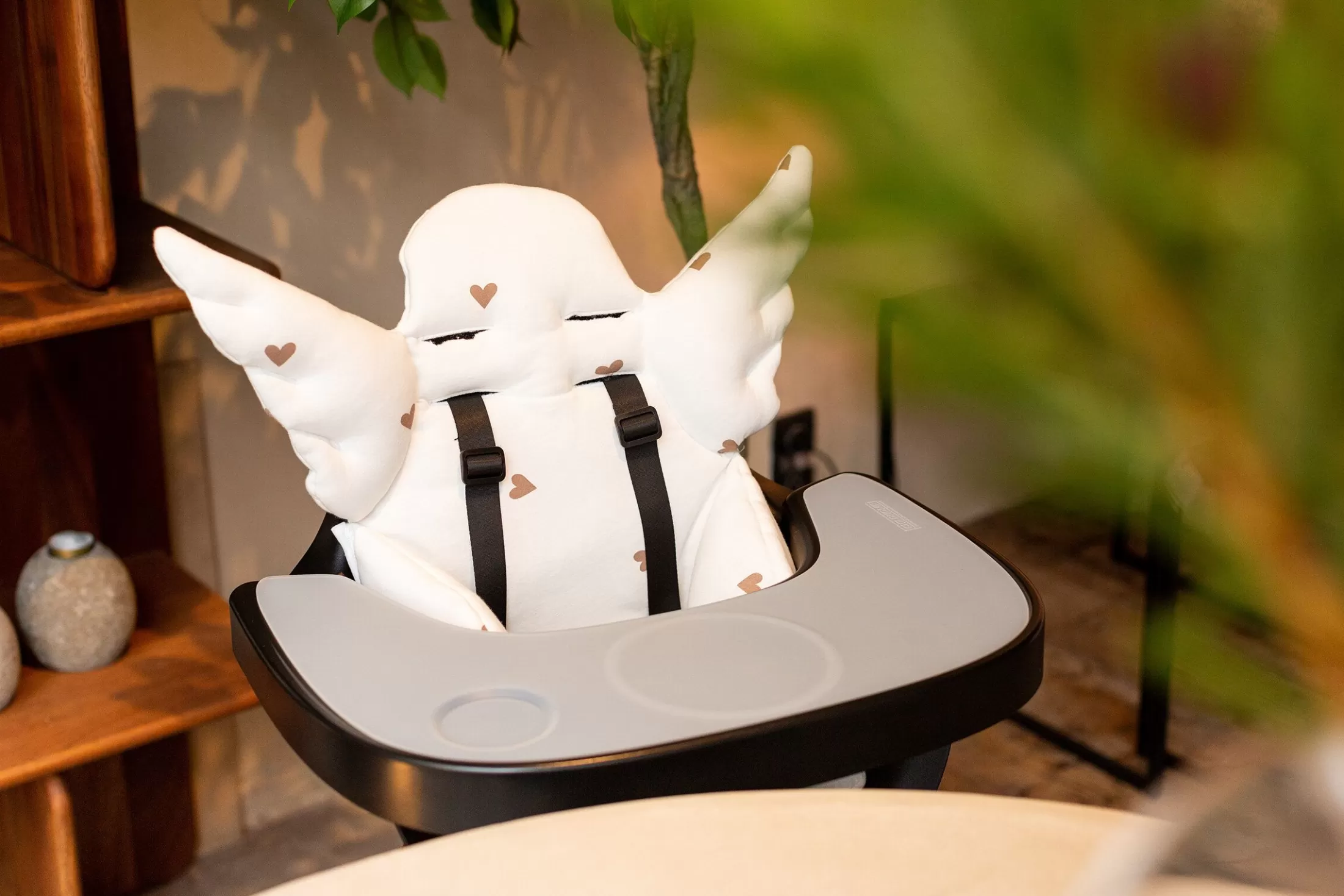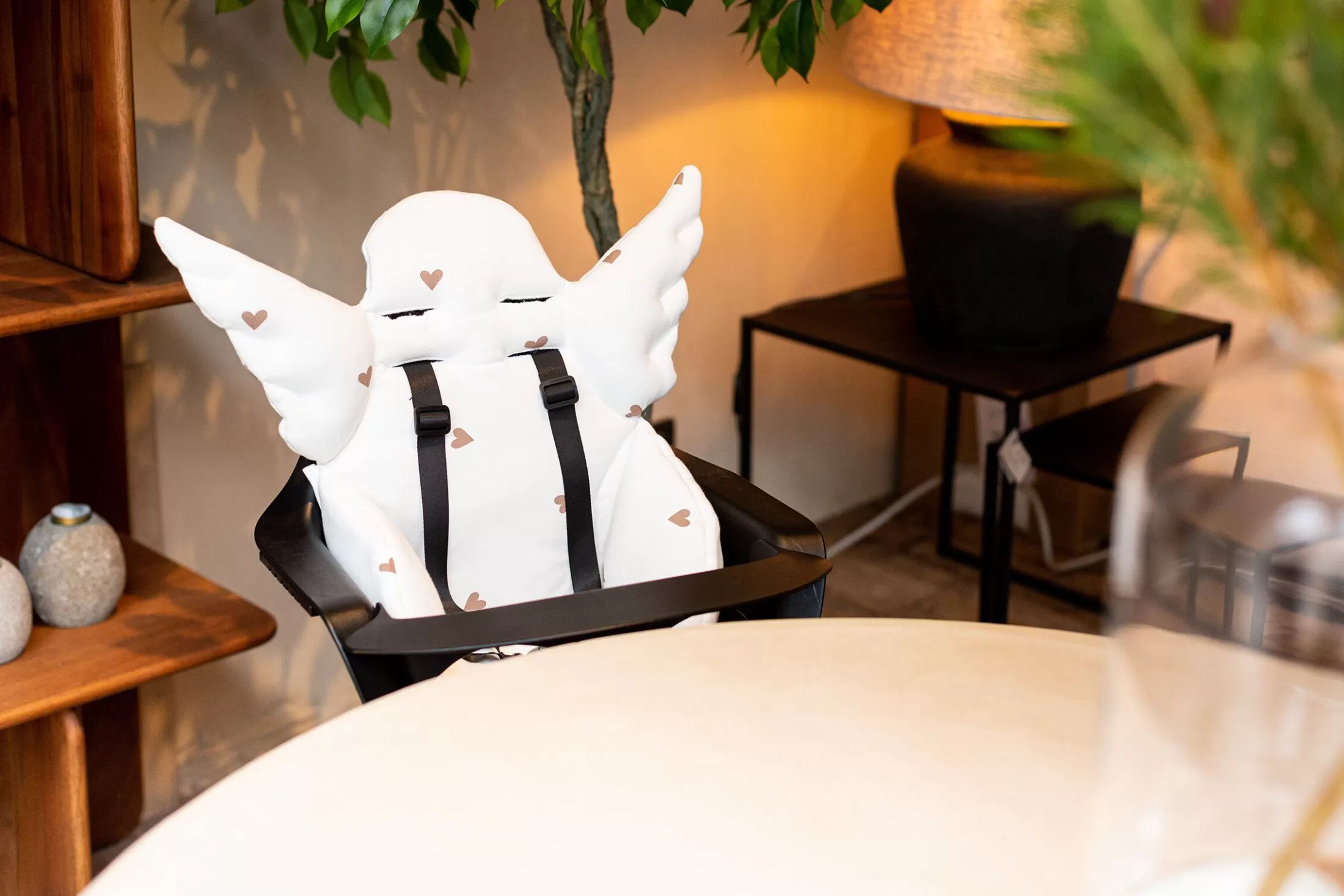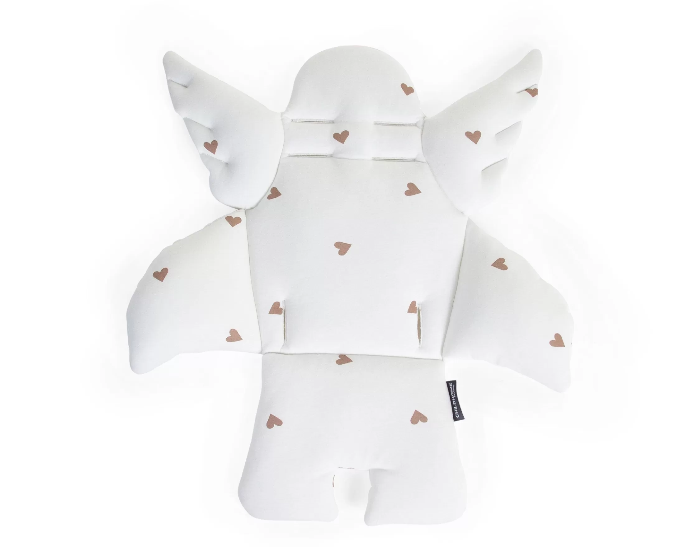 Un coussin de siège amusant offre à votre bébé encore plus de confort. Ce coussin universel peut être utilisé sur toutes les chaises pour enfants, transats et même dans les poussettes! Le coussin d’assise offre à votre bébé une douceur et un soutien supplémentaires, qu’il soit allongé ou assis. Les trous dans le coussin vous permettent de tirer les sangles de la ceinture de sécurité à travers le coussin et que votre enfant est attaché en toute sécurité. Le coussin ange Jersey Hearts a des ailes d’ange romantiques des deux côtés qui transformeront votre bien-aimé en petit ange.Atouts importants en un coup d’œil