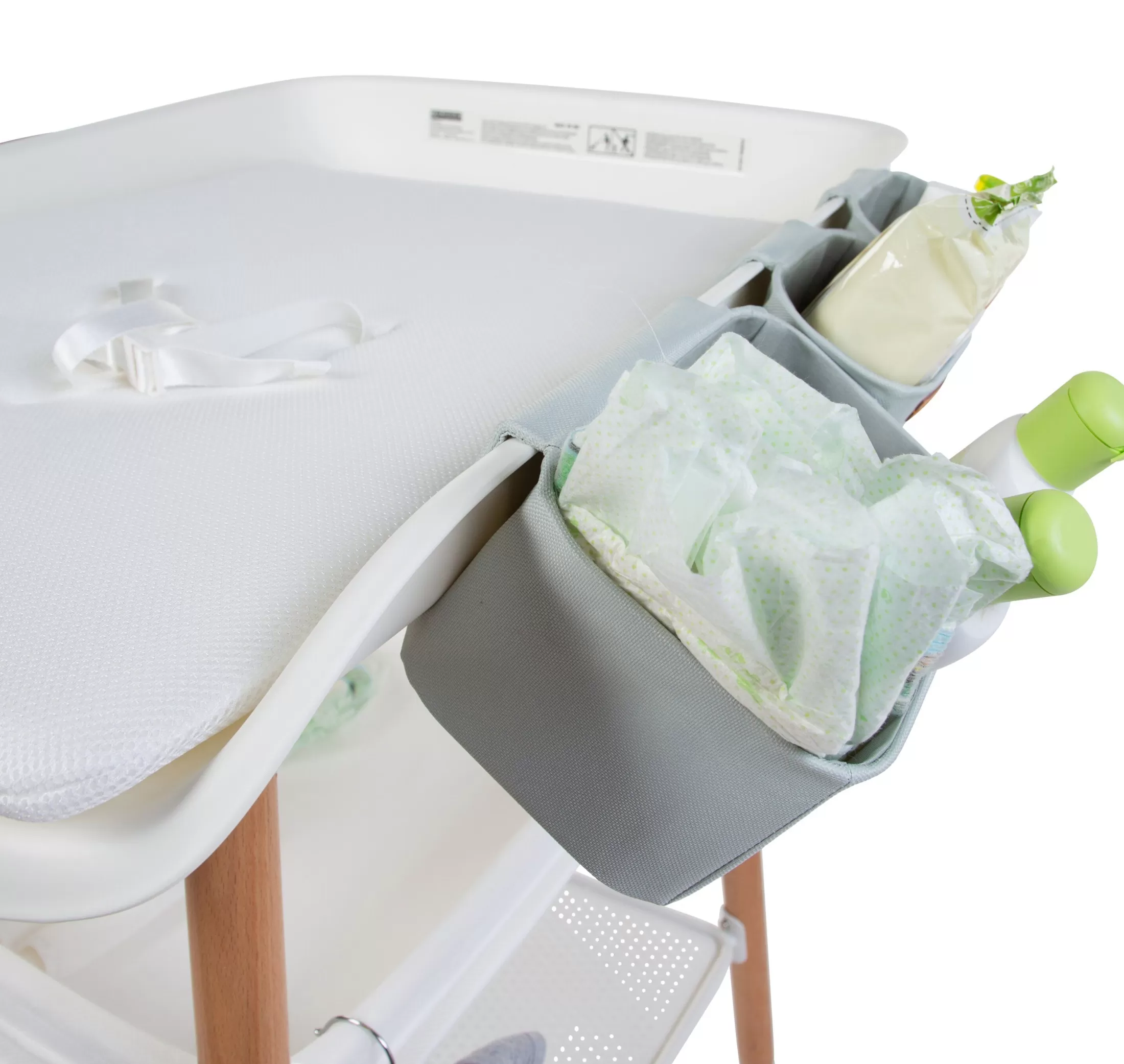 Bel ensemble de 3 paniers de rangement décoratifs de couleur gris clair que vous pouvez facilement accrocher grâce aux supports à l’arrière, par exemple à notre table à langer Evolux. Les paniers suspendus sont parfaits pour ranger, par exemple, quelques couches ou chiffons à langer, mais aussi des jouets. Garder la chambre bébé bien rangée est désormais un jeu d’enfant avec ces jolis paniers de rangement pratiques à suspendre. L’ensemble se compose de 2 paniers suspendus de 14x10x10 cm et d’un plus grand panier suspendu de 21x14x10 cm.