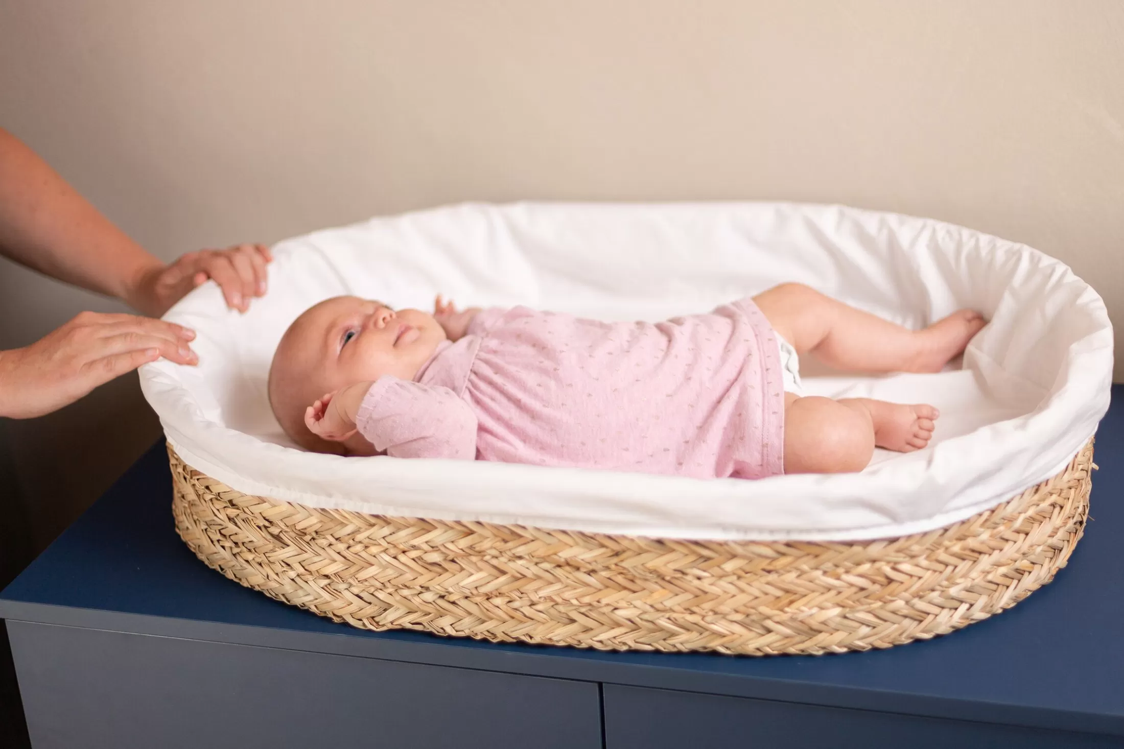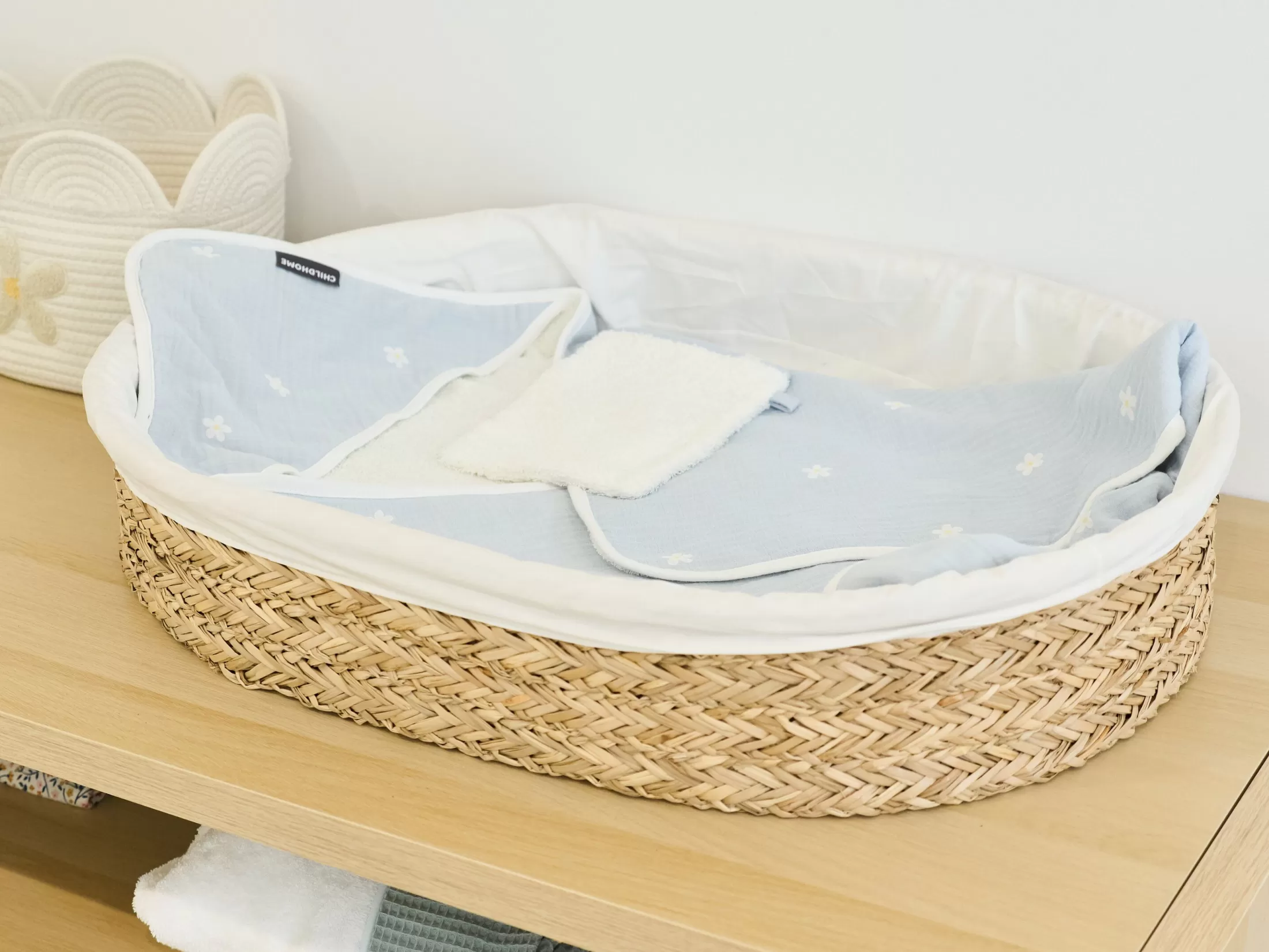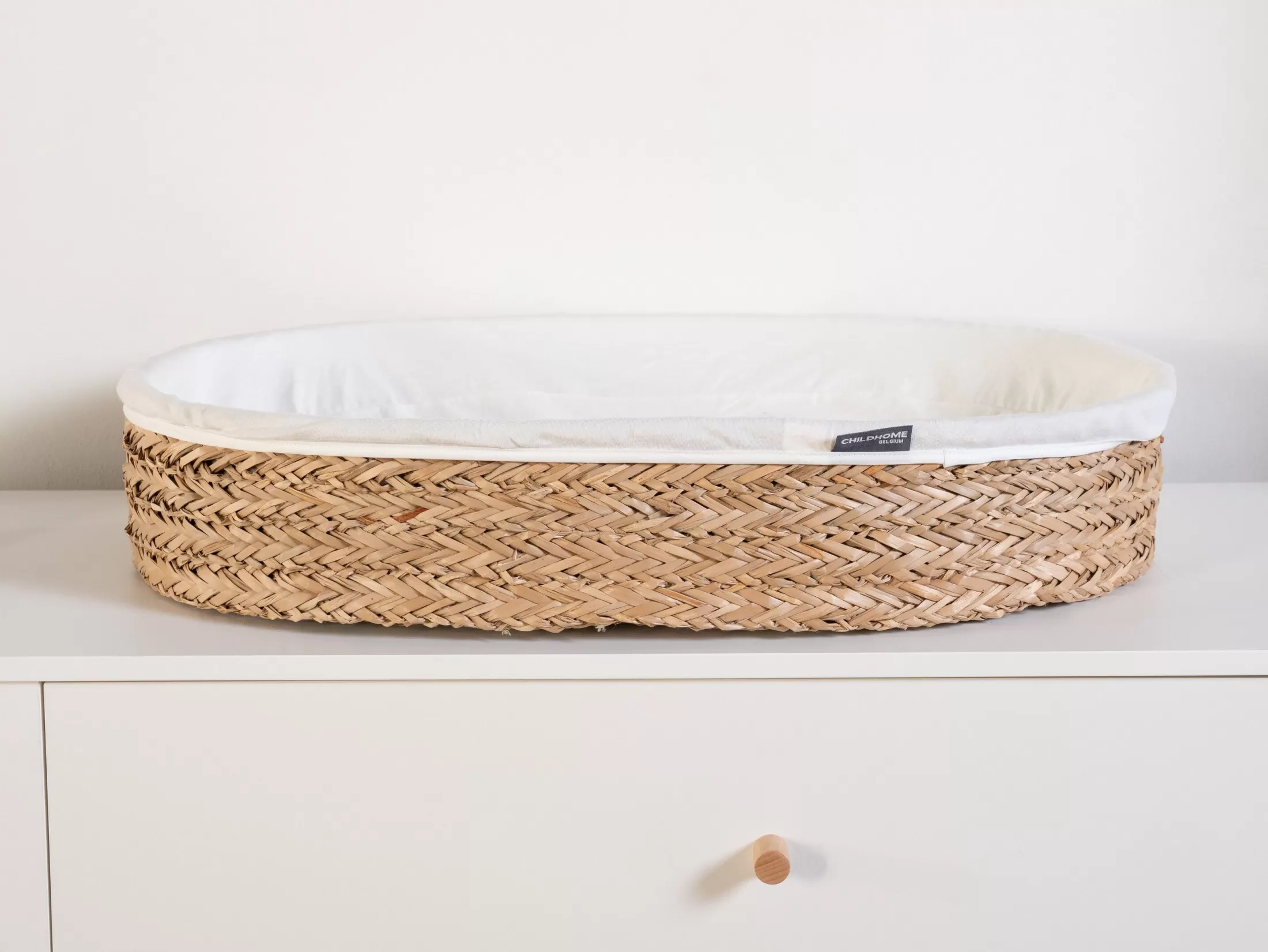 Ce panier à langer magnifiquement tissé est une variation tendance d’un matelas à langer traditionnel. Le panier de soins s’inspire de nos magnifiques paniers de moïse. Grâce aux matériaux naturels et au look apaisant, c’est un véritable atout dans n’importe quelle chambre de bébé. Ce panier bas est livré avec un matelas blanc. Pendant les premiers mois, votre bébé adorera se faire soigner ici, car le panier procure une grande sensation de sécurité. Le panier d’allaitement est-il trop petit pour votre enfant? Aucun problème! Ensuite, il peut être utilisé comme un bel objet décoratif dans la chambre enfant pour les animaux en peluche par exemple.