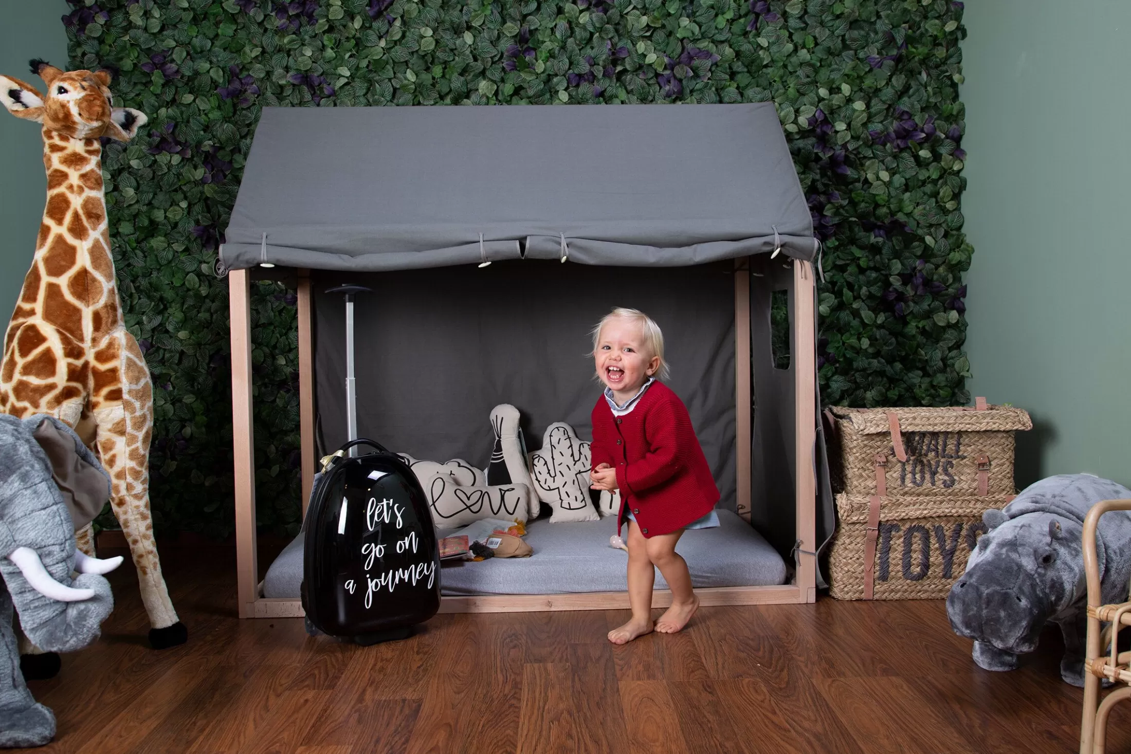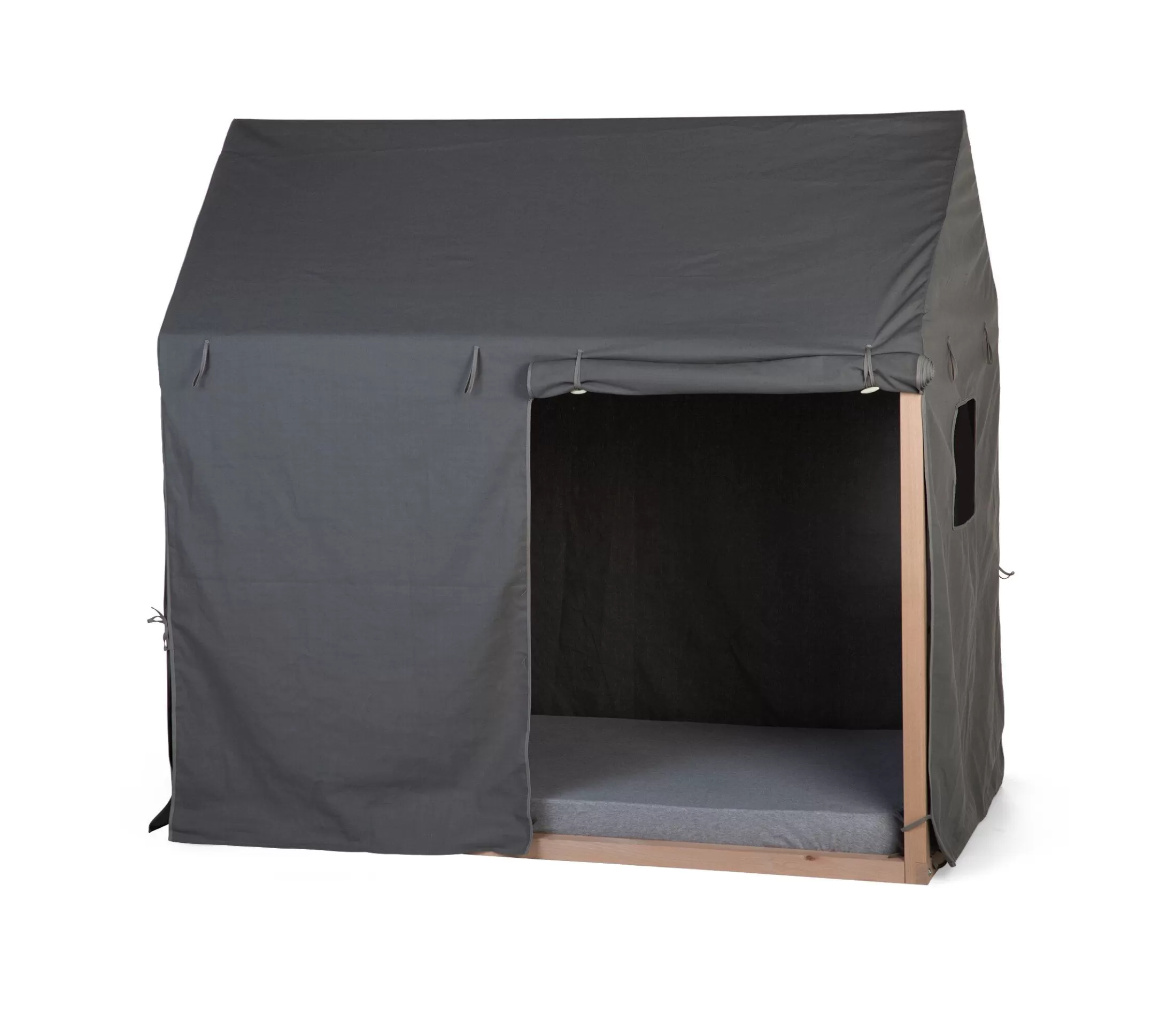 Créez la tente de lit la plus cool pour vos enfants en plaçant cette housse sur le cadre de la maison de lit de CHILDHOME. La housse est fabriquée à partir de toile et comporte des portes et des fenêtres découpées sur le côté pour que chaque nuit vous donne l’impression de camper. Tous les côtés peuvent être facilement enroulés avec des rubans. L’heure du coucher n’a jamais été aussi amusante ! Cette housse en anthracite est réalisée sur mesure pour le cadre de lit maison CHILDHOME 70x140cm. Remarque : la maison à cadre de lit n’est pas incluse.Atouts importants en un coup d’œil